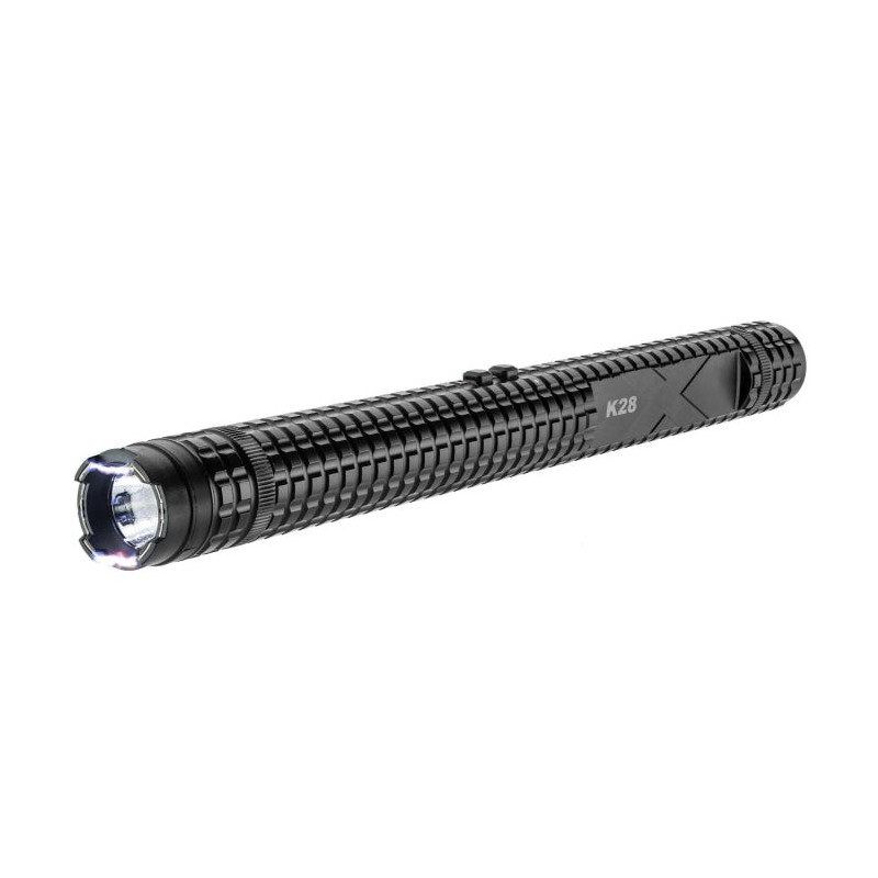 Permet de tenir un agresseur à distance grâce à son crépitement très impressionnant et à sa longueur de 35 cm et de le neutraliser très efficacement grâce à sa fonction électrochoc de 10 000 000 de volts qui agira même à travers les vêtements.