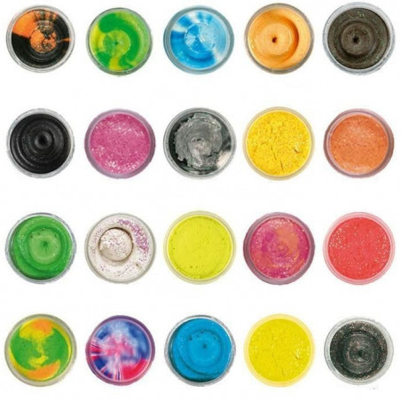 Voici la pâte la plus utilisée par les pêcheurs. Pâte à truite flottante avec des paillettes qui se dispersent dans l'eau pour augmenter son pouvoir d'attraction.
