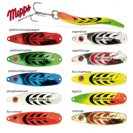 Grâce à sa forme spécifique, il crée des reflets de lumière uniques. Les cuillères ondulantes Syclops Fluo imitent parfaitement les mouvements d'un poisson blessé, il saute légèrement sur les côtés, puis il peut soudainement tourner autour de son axe. Grâce à la double courbure du corps aux indentations caractéristiques, la nature de son travail reste inchangée lors d'un guidage rapide, modéré ou très lent. Cette polyvalence de travail vous permet de pénétrer facilement de vastes zones d'eau stagnante (en pêchant le brochet, le sandre et la perche), ainsi que les rivières et les ruisseaux à débit rapide (en pêchant la truite de mer, la truite, le saumon et le chevesne). Les plus petits modèles SYCLOPS sont recommandés pour la pêche à la perche avec rotation légère.
